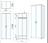 Шафа для одягу з ЛДСП 16мм. Колір Бук або Вільха або погоджуеться із замовником. Крайка 0.8 або більше колір чорний. Шафа под іленна на 2 частини та має трубу для одягу . Ручки 128мм чорні. Ніжки пінги (м6) регульовані.