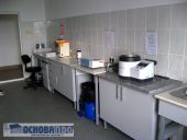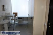 Для отдыха и приема пищи персонала была оборудована мини-кухня с кухонными тумбами , столом обеденным и стульями "Смайл". В производстве кухонной мебели мы используем кухонные столешницы собственного производства с немецкими пластиками фирмы "Resopal".